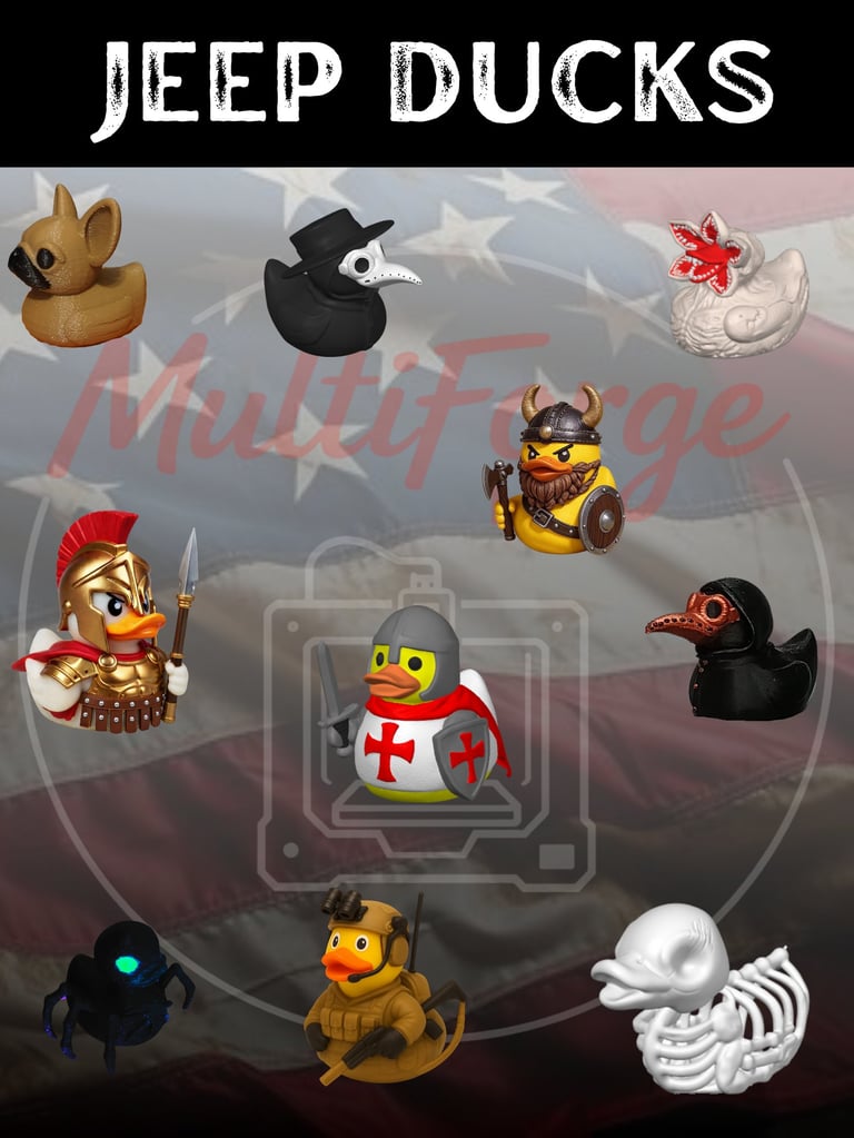 Unique 3D Printed Jeep Ducks, All Ducks Printed in PETG Unless stated otherwise.